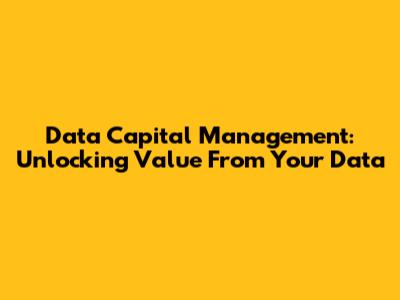 Data Capital Management: Unlocking Value From Your Data