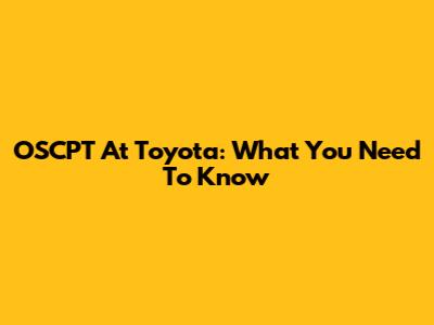 OSCPT At Toyota: What You Need To Know