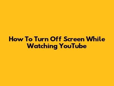 How To Turn Off Screen While Watching YouTube