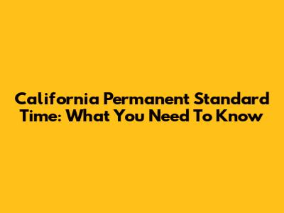 California Permanent Standard Time: What You Need To Know
