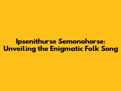Hey folks, ever stumble upon a piece of music so unique, so steeped in mystery, that it just sticks with you? That's the feeling you get when you dive into the world of Ipsenithurse Semonohorse, a folk song that's as captivating as it is perplexing. It's a journey into a realm where the ordinary fades and the extraordinary takes center stage, and where every note, every lyric, seems to whisper a secret. I'm here to unpack what makes this folk song so special, exploring its origins, the layers of meaning woven into its melodies, and why it continues to resonate with so many listeners.