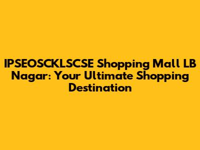Why IPSEOSCKLSCSE Shopping Mall LB Nagar is the Place to Be