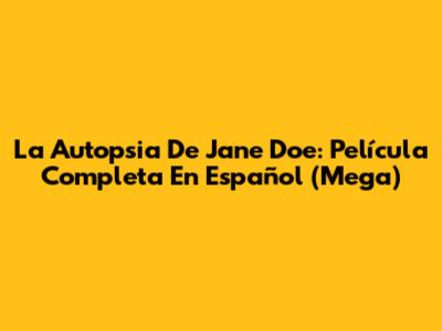 La Autopsia De Jane Doe: Película Completa En Español (Mega)