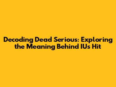 Hey guys! Ever found yourself completely captivated by a song? That's definitely how many of us feel about IU's 'Dead Serious'. It's got that infectious beat, those killer vocals, and lyrics that seem to hit right in the feels. But have you ever stopped to really unpack what this song is all about? If you're scratching your head, wondering about 'Dead Serious' meaning, then you're in the right place. We're diving deep into the song, breaking down the lyrics, and trying to uncover the story that IU is telling. Get ready to have your understanding of 'Dead Serious' taken to a whole new level! So, buckle up because we're about to explore the depths of IU's artistry and the nuances of 'Dead Serious'.