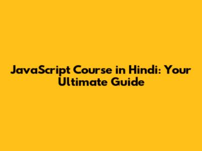 JavaScript Course In Hindi: Your Ultimate Guide