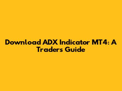 Download ADX Indicator MT4: A Trader's Guide