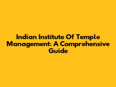 Indian Institute Of Temple Management: A Comprehensive Guide