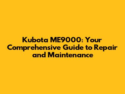 Troubleshooting Tips for Your Kubota ME9000
