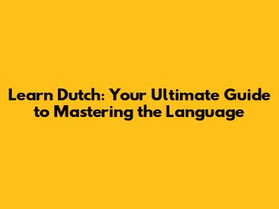 Hey there, language enthusiasts! Ready to dive into the vibrant world of the Dutch language? You've come to the right place! Learning Dutch, also known as Nederlands, can open up a whole new world of opportunities, from exploring the charming canals of Amsterdam to understanding the rich history and culture of the Netherlands and Belgium. In this comprehensive guide, we'll cover everything you need to know to get started, from the basics of Dutch grammar and pronunciation to practical tips and resources for your language-learning journey. So, grab a stroopwafel, settle in, and let's get started on your adventure to learn Dutch! The Dutch language, spoken by over 23 million people worldwide, might seem challenging at first, but with the right approach and dedication, you'll be speaking like a native in no time. This guide is designed to provide you with a solid foundation, covering essential aspects of the language and offering practical advice to accelerate your learning process. Whether you're a complete beginner or have some prior experience, we'll equip you with the knowledge and tools you need to succeed. The journey to learn a new language is exciting and rewarding, opening doors to new cultures, experiences, and perspectives. With Dutch, you'll not only gain a valuable skill but also unlock a deeper appreciation for the Dutch-speaking world. Let's start this adventure together and make learning Dutch an enjoyable and achievable goal. This comprehensive guide will cover all aspects of Dutch language acquisition, from grammar and pronunciation to vocabulary and practical communication skills, ensuring you have everything you need to succeed. We'll explore the best resources, tips, and strategies to make your learning journey efficient and enjoyable. So, get ready to embark on an exciting adventure and unlock a new world of possibilities by mastering the Dutch language. With dedication and the right approach, you'll be speaking Dutch fluently sooner than you think! Let's get started on your exciting journey to learn Dutch, where you'll discover a world of culture, history, and communication.