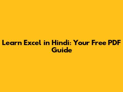 Hey guys! Ever felt lost staring at a spreadsheet, wondering how to even begin? You're not alone! Excel is a super powerful tool, but it can seem intimidating at first. That's why we've put together this guide to help you learn Excel in Hindi. Yes, you read that right – in Hindi! We'll break down everything from the basics to some more advanced techniques, and we'll even point you towards a free PDF resource to make your learning journey smoother. So, grab a cup of chai, get comfy, and let's dive into the world of Excel!