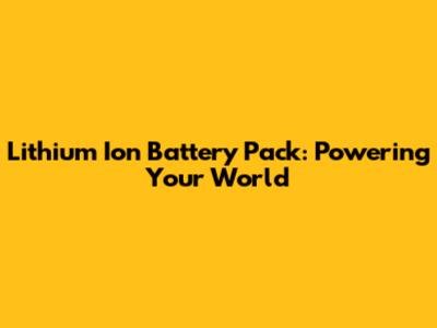 Lithium Ion Battery Pack: Powering Your World