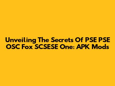 Unveiling The Secrets Of PSE PSE OSC Fox SCSESE One: APK Mods
