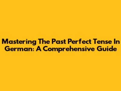 Mastering The Past Perfect Tense In German: A Comprehensive Guide
