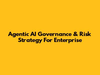 Agentic AI Governance & Risk Strategy For Enterprise