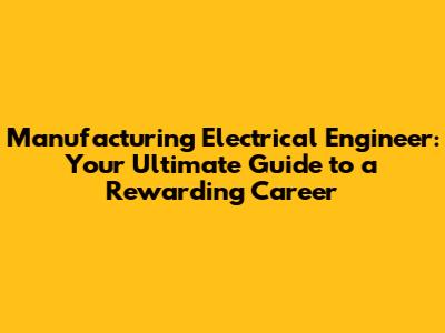 Manufacturing Electrical Engineer: A Comprehensive Guide
