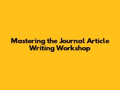 Mastering Journal Article Writing Workshop