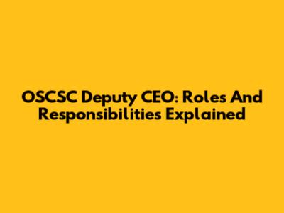 OSCSC Deputy CEO: Roles And Responsibilities Explained