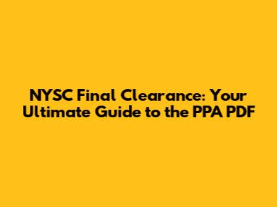 What is NYSC Final Clearance? Why is the PPA PDF Important?