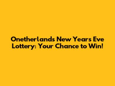 Hey guys! Are you ready to kick off the new year with a bang? Onetherlands is bringing the heat with their amazing New Year's Eve Lottery, and you definitely don't want to miss out. I know, I know, lotteries can seem like a long shot, but hey, someone's gotta win, right? And imagine starting the year with a huge windfall – talk about a dream come true! So, let's dive into all the juicy details about this lottery, how you can participate, and what makes it so special. Trust me, you'll want to hear this!
