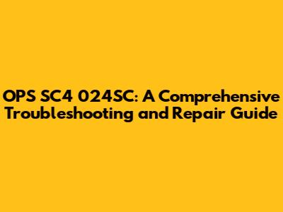 OPS SC4 024SC: Troubleshooting & Repair Guide
