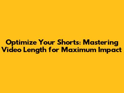 Optimize Your Shorts: Mastering Video Length For Maximum Impact