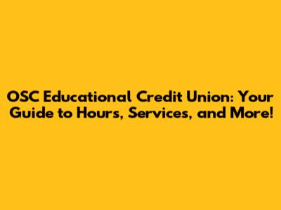 Hey guys! Ever wondered about the OSC Educational Credit Union? Maybe you're a student, faculty member, or part of the educational community and need a reliable financial institution. Understanding the OSC Educational Credit Union, particularly its hours of operation, is super important for managing your banking needs effectively. This guide dives deep into everything you need to know – from opening hours to the awesome services they offer. Let's get started!