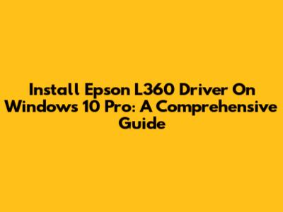 Install Epson L360 Driver On Windows 10 Pro: A Comprehensive Guide