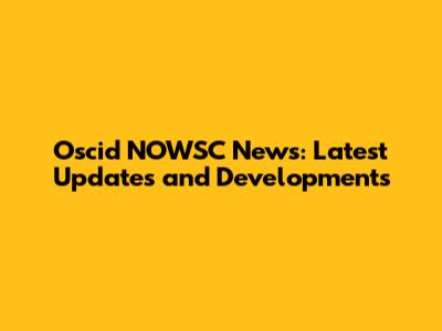 Oscid NOWSC News: Latest Updates And Developments