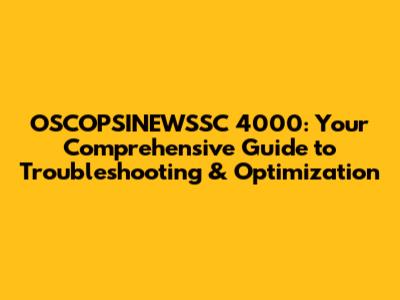 Optimizing Your OSCOPSINEWSSC 4000 for Peak Performance
