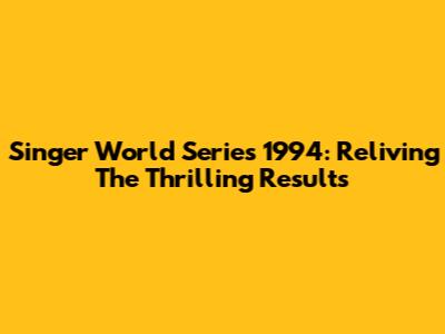 Singer World Series 1994: Reliving The Thrilling Results