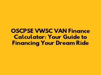 How to Use the OSCPSE VWSC VAN Finance Calculator Step-by-Step