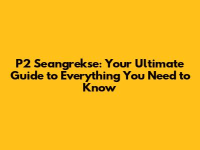 Hey everyone! Today, we're diving deep into the world of P2 Seangrekse. Whether you're a total newbie or have been around the block, this guide is your one-stop shop for everything you need to know. We'll cover what it is, why it matters, and how to get the most out of it. Ready to jump in? Let's go!