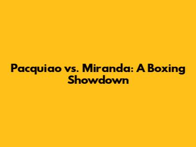 In the later rounds, Pacquiao’s dominance became more pronounced. His ability to cut off the ring and unleash rapid-fire combinations proved too much for Miranda. While Miranda displayed remarkable toughness, his energy began to wane under Pacquiao’s constant assault. Ultimately, the fight went the distance, with Pacquiao winning by a unanimous decision. The judges' scorecards reflected Pacquiao's control of the fight, though Miranda's resilience earned him the respect of fans and analysts alike. The match highlighted Pacquiao's enduring skill and relentless fighting spirit, while also showcasing Miranda's bravery and determination against one of boxing's all-time greats.
