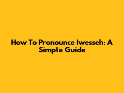 How To Pronounce "Iwesseh": A Simple Guide
