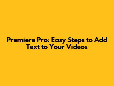 What's up, video editing wizards! Ever watch a killer video and think, "Man, I wish I could add some awesome text to mine?" Well, you're in the right place, guys! Today, we're diving deep into Adobe Premiere Pro to show you exactly how to add text to your video like a total pro. Forget those clunky, basic titles – we're talking dynamic, eye-catching text that'll make your projects pop. Whether you're a beginner just dipping your toes into Premiere Pro or a seasoned editor looking for a quick refresher, this guide is packed with all the juicy details you need. We'll cover everything from creating simple text overlays to adding those fancy motion graphics that'll really level up your content. So, grab your coffee, settle in, and let's get ready to transform your videos with some killer text!