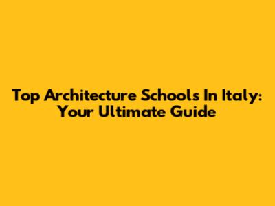Top Architecture Schools In Italy: Your Ultimate Guide