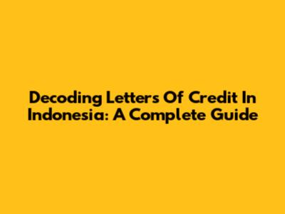 Decoding Letters Of Credit In Indonesia: A Complete Guide