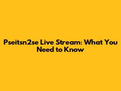 How to Watch the Pseitsn2se Live Stream