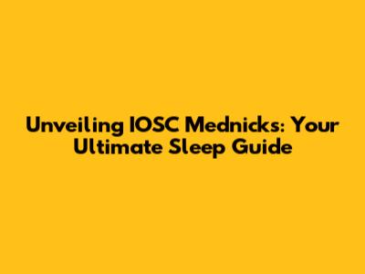 Unveiling IOSC Mednick's: Your Ultimate Sleep Guide