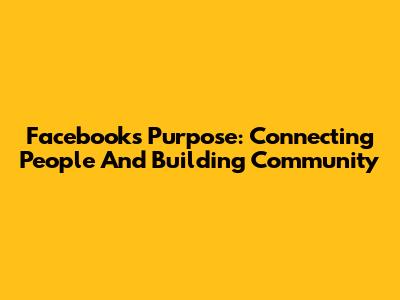 Facebook's Purpose: Connecting People And Building Community