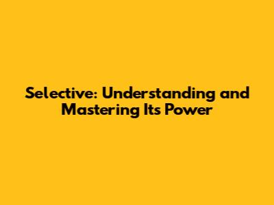 Hey guys! Ever heard of being "selective"? It's a word we throw around, but what does it really mean, and how can we use it to our advantage? This article dives deep into the world of selectivity, exploring its different facets and providing practical tips on how to become a master of it. Let's get started!
