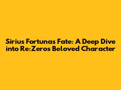 In conclusion, Sirius Fortuna is a pivotal character in Re:Zero. Her actions, her relationships, and her tragic fate have left an indelible mark on the series. From her complex motivations to her tumultuous relationships with other characters, she has sparked endless discussions and interpretations. The Reddit community has played a crucial role in dissecting her character, offering a multitude of perspectives, and enriching our understanding of this fascinating character.