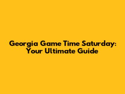 Georgia Game Time Saturday: Your Ultimate Guide