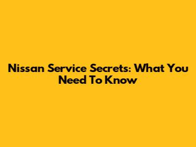 Nissan Service Secrets: What You Need To Know