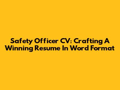 Safety Officer CV: Crafting A Winning Resume In Word Format