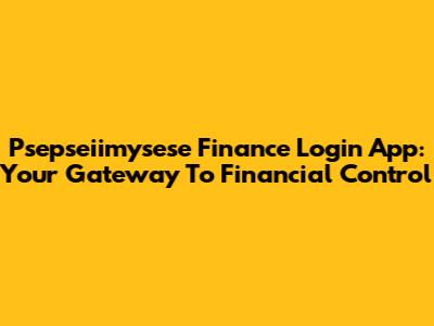 Psepseiimysese Finance Login App: Your Gateway To Financial Control