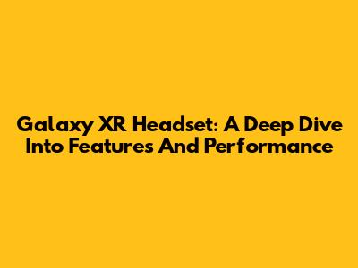 Galaxy XR Headset: A Deep Dive Into Features And Performance
