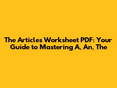 How to Use the Articles Worksheet PDF Effectively