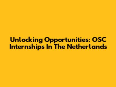 Unlocking Opportunities: OSC Internships In The Netherlands