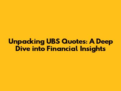 Unpacking UBS Quotes: A Deep Dive into Financial Insights